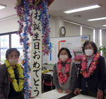 お三人で、くす玉を割っていただき、皆さまからのハッピーバースデーの歌でお祝いですヾ(@⌒ー⌒@)ノ